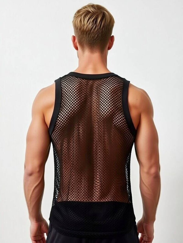 Shadow Skin Tank is een stijlvolle zwarte mesh tanktop voor mannen die durven op te vallen. Deze transparante heren tanktop is gemaakt van lichtgewicht, ademend mesh en sluit strak aan als een tweede huid. Het ontwerp benadrukt het bovenlichaam en combineert sensualiteit met een moderne, minimalistische look.